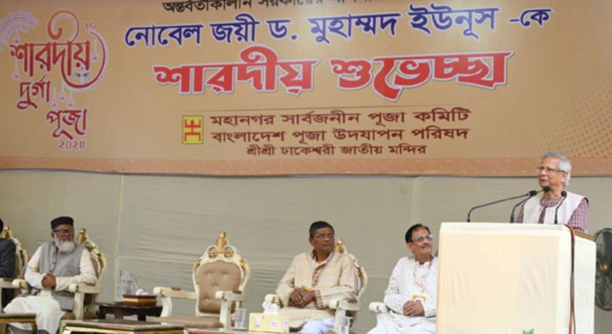 পরিদর্শনের সময় প্রধান উপদেষ্টা পূজার আয়োজক এবং ধর্মীয় নেতাদের সঙ্গে মতবিনিময় করেন। তিনি বলেন, ‘আমরা নিজেরা যদি বিভক্ত হই, তবে জাতি হিসেবে আমরা ব্যর্থ হবো। কিন্তু আমরা ব্যর্থ হতে চাই না। আমরা এমন একটি বাংলাদেশ গড়তে চাই, যেখানে সব নাগরিকের অধিকার সমান হবে। সেখানে কেউ সংখ্যাগরিষ্ঠ বা সংখ্যালঘু হিসেবে পরিচিত হবে না, সবাই হবে সমান মর্যাদার নাগরিক।