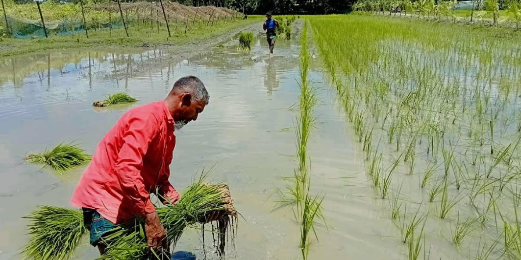 দশমিনা(পটুয়াখালী) প্রতিনিধি : পটুয়াখালীর দশমিনা উপজেলায় বেশ কয়েকদিন ধরেই বৃৃষ্টি হওয়ায় শুকিয়ে থাকা খাল, বিল ও জলাশয়ে পানিতে ডুবে গেছে। বৃষ্টির পানিতে শুকিয়ে যাওয়া ফসলের ক্ষেতেও ফিরে এসেছে আর্র্দ্রতা। নিচু জমিতে জমেছে বৃষ্টির পানি। আর এই সময়টায় রোপা আমন চাষে ব্যস্ত হয়ে উঠছেন উপজেলার কৃষকেরা। জমি প্রস্তুত, চাষাবাদ ও ধানের চারা রোপণে ব্যস্ত সময় কাটছে চাষিদের। বিশেষ করে উপজেলার চরাঞ্চলের কৃষকরা নদীর পাড়ের জমিসহ ফসলি জমিতে ধান রোপণ করছেন।