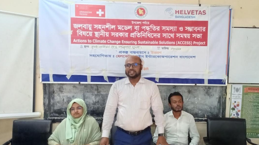পাইকগাছা প্রতিনিধি : পাইকগাছায় উপজেলা পর্যায়ে জলবায়ু সহনশীল মডেল সম্ভাবনা বা পদ্ধতির সমস্যা ও সম্ভাবনার বিষয়ে স্থানীয় সরকার প্রতিনিধিদের সাথে স্বমন্বয়সভা অনুষ্ঠিত হয়েছে। বুধবার সকালে পাইকগাছা কৃষি সম্প্রসারণ অধিদপ্তরের সম্মেলন কক্ষে উত্তরণ কর্তৃক আয়োজিত হেলভেটাস সুইস ইন্টার কো-অপারেশন বাংলাদেশের সহযোগিতায় উপজেলা কৃষি অফিসার একরামুল হোসেনের সভাপতিত্বে অনুষ্ঠিত হয়। সভায় উপস্থিত ছিলেন উপজেলা প্রাণী সম্পদ কর্মকর্তা ডা. পার্থ প্রতিম রায়, উপজেলা সমাজসেবা কর্মকর্তা অনাথ কুমার বিশ্বাস, উপজেলা মহিলা বিষয়ক কর্মকর্তা রেশমা আক্তার, উপজেলা মাধ্যমিক শিক্ষা কর্মকর্তা শাহাজাহান আলী শেখ। স্বাগত বক্তব্য রাখেন উত্তরণের আরাফাত হোসেন। বক্তব্য রাখেন পাইকগাছা প্রেসক্লাবের সভাপতি এডভোকেট এফ এম এ রাজ্জাক,পানি কমিটির সভাপতি অধ্যাপক শেখ রুহুল কুদ্দুস, সাধারণ সম্পাদক শেখ সাদেকুজ্জামান প্রমুখ।