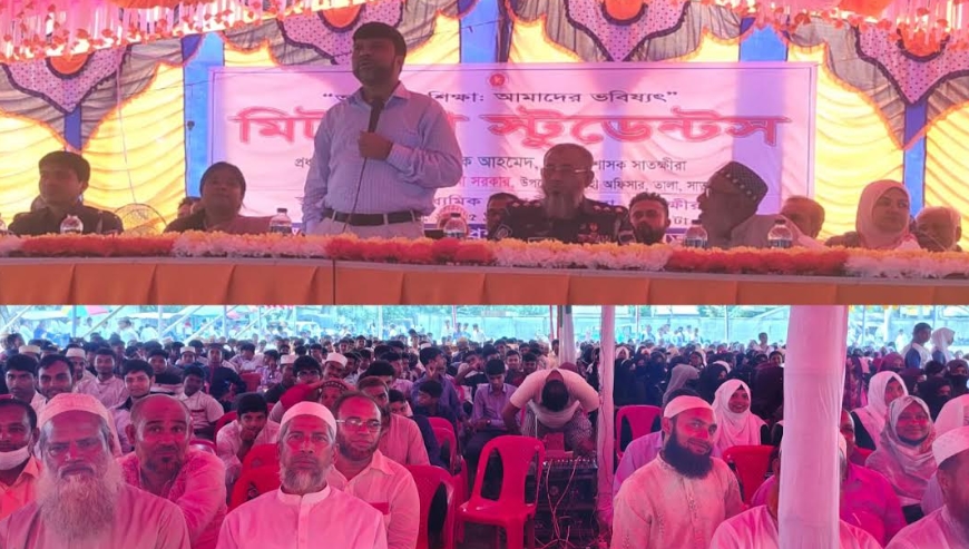 তালা প্রতিনিধি : “আমাদের শিক্ষা: আমাদের ভবিষ্যৎ” এই স্লোগান সামনে রেখে বৃহস্পতিবার (১৮ সেপ্টেম্বর) সকালে তালা উপজেলার জাতপুর সমকাল মাধ্যমিক বিদ্যাপীঠ মাঠে মিট দ্যা স্টুডেন্টস অনুষ্ঠান অনুষ্ঠিত হয়। অনুষ্ঠানে প্রধান অতিথি হিসেবে উপস্থিত ছিলেন সাতক্ষীরা জেলা প্রশাসক মোস্তাক আহমেদ। তালা উপজেলা প্রশাসন আয়োজিত অনুষ্ঠানে সভাপতিত্ব করেন তালা উপজেলা নির্বাহী অফিসার (ইউএনও) দীপা রানী সরকার। উপজেলা সহকারী কমিশনার (ভূমি) মোঃ রাহাত খানের সঞ্চালনায় অনুষ্ঠানে বিশেষ অতিথি হিসেবে উপস্থিত ছিলেন তালা সরকারি কলেজের অধ্যক্ষ প্রফেসর মোঃ ইমদাদুল হক, সহকারী পুলিশ সুপার (তালা সার্কেল) মোঃ হাসানুর রহমান, জেলা জামায়াতের নায়েবে আমীর ডাঃ মাহমুদুল হক, তালা থানার ওসি মো. মাইনউদ্দিন, অত্র বিদ্যাপীঠের সভাপতি উত্তরণ পরিচালক শহিদুল ইসলাম, জেলা কলেজ শিক্ষক সমিতির সভাপতি অধ্যক্ষ এনামুল ইসলাম, অধ্যক্ষ লুৎফুন্নেছা, অধ্যক্ষ বিধান চন্দ্র সাধু, সিনিয়র উপজেলা মৎস্য অফিসার তারিক ইমাম, মাধ্যমিক শিক্ষা অফিসার মোঃ আতিয়ার রহমান, একাডেমিক সুপারভাইজার প্রভাস কুমার দাস, তালা প্রেসক্লাব সভাপতি এমএ হাকিম, নাগরিক কমিটির সাধারণ সম্পাদক সফিকুল ইসলাম, অত্র বিদ্যাপীঠের প্রধান শিক্ষক আলমগীর হোসেন, প্রভাষক গাজী আছাদুজ্জামানসহ বিভিন্ন স্কুল, কলেজ ও মাদ্রাসার শিক্ষক-শিক্ষার্থী ও স্থানীয় গণ্যমান্য ব্যক্তিবর্গ।