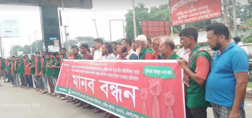 বেনাপোল চেকপোষ্টে কুলি শ্রমিকদের মানববন্ধন ও বিক্ষোভ মিছিল