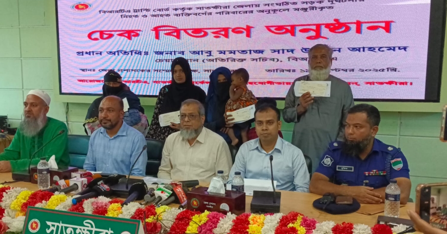 আজ শুক্রবার সকাল ১০টায় সাতক্ষীরা জেলা প্রশাসকের সম্মেলন কক্ষে প্রধান অতিথি বাংলাদেশ রোড ট্রান্সপোর্ট অথরিটি (বিআরটিএ) এর চেয়ারম্যান মো. আবু মমতাজ সাদ উদ্দিন আহমেদ এ চেক বিতরণ করেন।