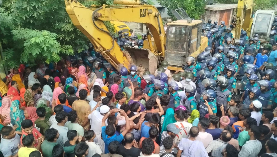 এ সময় স্থানীয়রা ইটপাটকেল নিক্ষেপ করলে পুলিশ পিছু হটতে বাধ্য হয়। পরে পুলিশ টিয়ার সেল নিক্ষেপ করে। এ সময় উচ্ছেদ অভিযানে যাওয়া বুলডেজার গাড়ি ভেঙে দেয়া হয়।