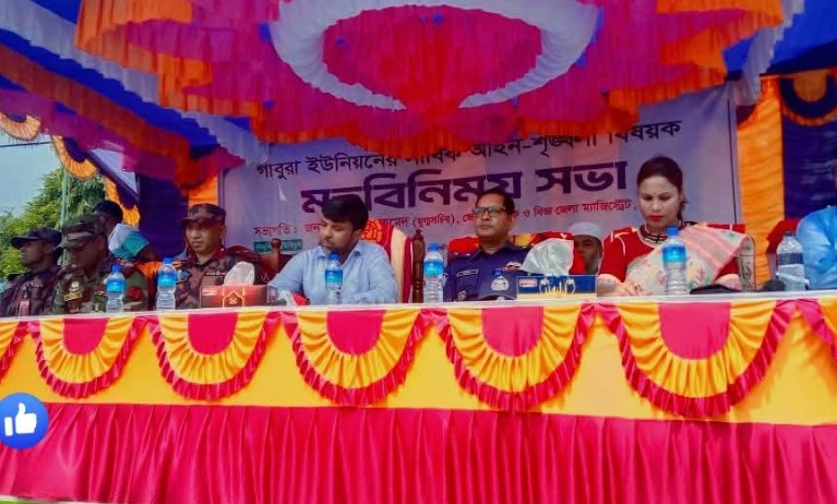 জেলা প্রশাসক তার বক্তব্যে বলেন, ইউনিয়ন ২টিতে সুপেয় পানির সংকট, বেড়িবাঁধ সংস্কার, খেলার মাঠ ও শিক্ষা প্রতিষ্ঠান সংস্কার, গাবুরা ইউনিয়ন কমপ্লেক্স নির্মাণ, মাদক ও ডাকাত নির্মূল, ইউনিয়নটির মধ্যস্থানে পুলিশ ক্যাম্প ও হাসপাতাল স্থাপনসহ সকল সমস্যা সমাধানে সরকারের উর্ধ্বতন কর্তৃপক্ষের মাধ্যমে উদ্যোগ গ্রহণ করা হবে।”