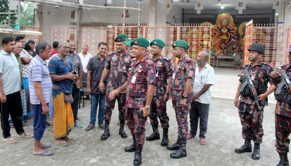 সাতক্ষীরা ৩৩ বিজিবির অধিনায়ক লেফটেন্যান্ট কর্নেল মো. আশরাফুল হক বলেন, সীমান্তবর্তী এলাকায় প্রতিটি পূজা মণ্ডপে দায়িত্বপ্রাপ্ত উদযাপন কমিটির সঙ্গে সমন্বয় রাখা হচ্ছে। স্থানীয় প্রশাসন, পুলিশ ও আনসার বাহিনীর সঙ্গে সমন্বয় করে সর্বোচ্চ নিরাপত্তা নিশ্চিত করতে প্রয়োজনীয় পদক্ষেপ ও গোয়েন্দা নজরদারি নেওয়া হয়েছে। সম্ভাব্য অনুপ্রবেশ, চোরাচালান, নাশকতা ও দুষ্কৃতকারীদের তৎপরতা রোধে সতর্ক অবস্থানে রয়েছে বিজিবি।