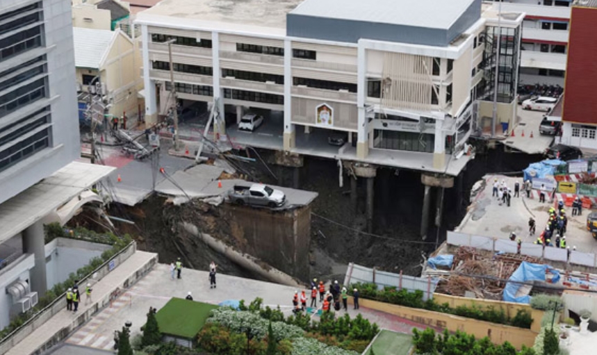 ডেস্ক রিপোর্ট : থাইল্যান্ডের রাজধানী ব্যাংককে সামসেন রোডের একটি অংশ দেবে গেছে। এতে করে ভাজিরা হাসপাতালের সামনে ১৬০ ফুট গভীর একটি গর্তের সৃষ্টি হয়েছে। তবে এ ঘটনায় কেউ হতাহত হননি।