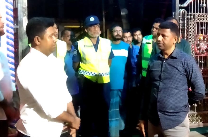 ফকিরহাট প্রতিনিধি : বাগেরহাট জেলা পুলিশ সুপার (এসপি) মো: আসাদুজ্জামান ফকিরহাট উপজেলার বিভিন্ন দুর্গাপূজা মন্ডপ পরিদর্শন করেন। এসময় স্ব স্ব মন্দির কমিটির নেতৃবৃন্দদের সাথে মতবিনিময় করেন। মঙ্গলবার (২৩ সেপ্টেম্বর) রাত ১০টায় মানসা কালী মন্দরের দূর্গাপূজা মন্দির পরিদর্শনকালে অন্যদের মধ্যে উপস্থিত ছিলেন অতিরিক্ত পুলিশ সুপার মো: রবিউল ইসলাম শামীম, ফকিরহাট মডেল থানার ভারপ্রাপ্ত কর্মকর্তা (ওসি) আবদুর রাজজাক মীর. ওসি (তদন্ত) মো: আলমগীর হোসেন, মানসা ক্যাম্প ইনচার্জ এসআই অহিদুল ইসলামসহ বিভিন্ন কর্মকর্তাসহ মন্দির কমিটির নেতৃবৃন্দ উপস্থিত ছিলেন। বাগেরহাট জেলা পুলিশ সুপার (এসপি) মো: আসাদুজ্জামান বলেন, দুর্গাপূজাকে সুষ্ঠু, সুন্দর, শান্তিপূর্ণ ও উৎসবমুখর পরিবেশে সম্পন্ন করার জন্য প্রশাসনের পক্ষ থেকে প্রয়োজনীয় সকল সহযোগিতা করা হবে। তবে মন্দির এলাকায় স্বেচ্ছাসেবক রাখতে হবে। তাদের গলায় পরিচয়পত্র ঝুলিয়ে রাখতে হবে। যাতে আগত দশনার্থীরা বুঝতে পারেন তারা মন্দির কমিটির লোক। এছাড়া মন্দির এলাকায় সিসিটিভি ক্যামেরার আওতায় খাকা খুবই প্রয়োজন রয়েছে। এছাড়াও রাতে মন্দির পাহারার ব্যবস্থা করতে হবে। আইনশৃঙ্খলা বাহিনীর পাশাপাশি মন্দির কমিটি ও স্থানীয় লোকজনের সহযোগিতা থাকলে পূজা ভাল কাটবে বলে তিনি আশাবাদ ব্যক্ত জানান।