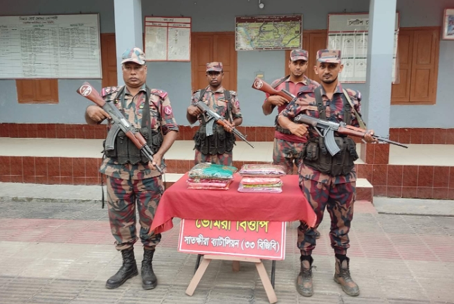 বিজিবি সূত্রে জানা যায়, গোপন তথ্যের ভিত্তিতে কাকডাঙ্গা বিওপির এর আভিযানিক দল কলারোয়া উপজেলার গেড়াখালী ও বাগাডাঙ্গীর মোড় নামক স্থান হতে ভারতীয় শাড়ি ও ওষুধ এবং ভোমরা বিওপির বিশেষ আভিযানিক দল সাতক্ষীরা সদর উপজেলার ফলমোড় নামক স্থান হতে ভারতীয় শাড়ি জব্দ করে।
