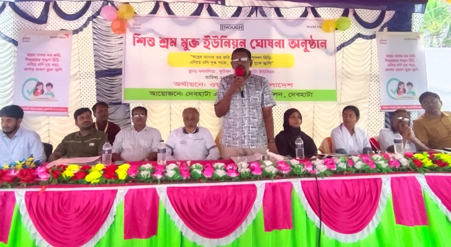 সাতক্ষীরা প্রতিনিধ : শিশু শ্রম প্রতিরোধ ও শিশুদের সুরক্ষা নিশ্চিতে দেবহাটায় বেসরকারী উন্নয়ন সংস্থা সুশীলনের আয়োজনে উপজেলার দেবহাটা সদর ইউনিয়নকে শিশু শ্রম মুক্ত ইউনিয়ন ঘোষনা করা হয়েছে। সোমবার ২২ সেপ্টেম্বর সকাল ১১টায় ঘলঘলিয়া প্রাথমিক বিদ্যালয়ের সামনে আয়োজিত উক্ত অনুষ্ঠানে সভাপতি হিসেবে উপস্থিত থেকে দেবহাটা সদর ইউনিয়নকে শিশু শ্রম মুক্ত ঘোষনা করেন দেবহাটা সদর ইউনিয়নের চেয়ারম্যান আব্দুল মতিন বকুল। সুশীলনের কমিউনিটি ডেভেলপমেন্ট অফিসার আসাদুজ্জামান রিপন ও কমিউনিটি ডেভেলপমেন্ট অফিসার মিজানুর রহমানের যৌথ সঞ্চালনায় অনুষ্ঠিত উক্ত অনুষ্ঠানে অন্যান্যের মধ্যে উপস্থিত ছিলেন ও বক্তব্য রাখেন দেবহাটা উপজেলা সমাজসেবা কর্মকর্তা তরিকুল ইসলাম, দেবহাটা উপজেলা মহিলা বিষয়ক কর্মকর্তা নাসরিন জাহান, সুশীলনের প্রোগ্রাম ম্যানেজার মামুন হোসেন, ওয়ার্ল্ড ভিশন বাংলাদেশের এরিয়া ম্যানেজার লাভলু খাঁন, দেবহাটা দেবহাটা রিপোর্টার্স ক্লাবের সভাপতি আর.কে.বাপ্পা, সাবেক প্রধান শিক্ষক আফছার আলী, টাউনশ্রীপুর শরচ্চন্দ্র উচ্চ বিদ্যালয়ের প্রধান শিক্ষক আবুল কালাম, সুশীলনের শিশু ফোরামের সভাপতি অনামিকা পাড়, আমাদের টিমের পরিচালক মনিরুজ্জামান মনি প্রমুখ। সভায় ইউনিয়নের প্রতিটি শিশুকে তার অধিকার ও সুরক্ষা নিশ্চিতকল্পে এই উদ্যোগকে সাধুবাদ জানান এবং শিশু শ্রম মুক্ত ঘোষনা করার জন্য ধন্যবাদ জানান। সাথে সাথে প্রতিটি শিশু যেন তার ভবিষ্যৎ সুন্দর করতে পারে সেলক্ষ্যে সকলকে কাজ করার আহবান জানান।