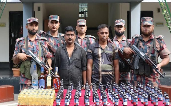 বিজিবি জানায়, আটককৃতরা হলেন ভারতের পশ্চিমবঙ্গের পূর্ব বর্ধমান জেলার ধোবা গ্রামের ইন্দ্রজিৎ হালদার (৩৮) এবং সাতক্ষীরার কলারোয়া উপজেলার বোয়ালিয়া গ্রামের জাহাঙ্গীর আলম (৩৭)। তাদের বহন করা ব্যাগ থেকে বিশেষ কায়দায় লুকানো ফেন্সিডিল ও মদ উদ্ধার করা হয়। এ সময় তাদের কাছ থেকে একটি মোবাইল ফোন ও নগদ ১৮ হাজার টাকাও জব্দ করা হয়। উদ্ধারকৃত মাদক ও মালামালের আনুমানিক বাজারমূল্য ৮৪ হাজার টাকা।