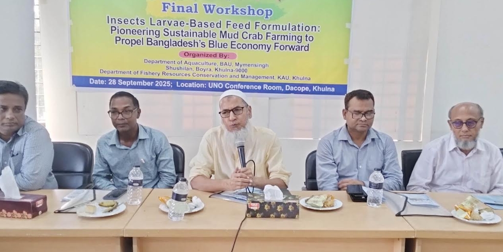 রবিবার বেলা ১১টায় উপজেলা পরিষদের হল রুমে জেলা মৎস্য কর্মকর্তা মোঃ বদরুজ্জামানের সভাপতিত্বে অনুষ্ঠিত কর্মশালায় প্রধান অতিথির বক্তৃতা করেন বাংলাদেশ কৃষি বিশ^বিদ্যালয়ের মুখ্য গবেষক অধ্যাপক ড. আব্দুস সালাম। বিশেষ অতিথির বক্তৃতা করেন খুলনা কৃষি বিশ^বিদ্যালয়ের সহযোগি অধ্যাপক ড. মোঃ মেহেদী আলম, খুলনা বিভাগের মৎস্য অধিদপ্তরের পরিচালক মো জাহাঙ্গীর আলম, উপ পরিচালক বিপুল কুমার বসাক, এনজিও সুশীলনের পরিচালক সচ্চিদানন্দ বিশ^াস। অন্যান্যের মধ্যে বক্তৃতা করেন মনিরুল ইসলামসহ আরো অনেকে। প্রধান অতিথি বলেন পোকা মাকড় লার্ভা ভিত্তিক খাদ্য প্রস্তুতকে যা টেকসই কঁকড়া চাষ শিল্পে একটি যুগন্তকারি উদ্ভাবন হিসাবে তুলে ধরেন। এই স্বল্প ব্যয়বহুল, ঘরোয়া উপায়ে তৈরী খাদ্য উৎপাদনের খরচ কমাতে সহায়তা করছে এবং কাঁকড়ার বৃদ্ধির হার উল্লেখ যোগ্য ভাবে বাড়াচ্ছে। বিশেষজ্ঞরা এই প্রযুক্তির মাধ্যমে উপকূলীয় জলজ খামার ব্যবস্থাকে আরো লাভ জনক ও জলবায়ু সহনশীল করার সম্ভাবনার উপর গুরুত্ব দেন।