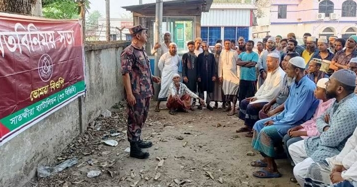 গত ১৯ আগস্ট ২৬ সেপ্টেম্বর পর্যন্ত এ সভা অনষ্ঠিত হয়। সাতক্ষীরা ব্যাটালিয়নের দায়িত্বাধীন পদ্মশাখরা, ভোমরা, বাঁকাল, গাজীপুর, ঘোনা, বৈকারী, কালিয়ানী, কুশখালী, তলুইগাছা, ঝাউডাঙ্গা, কাকডাংগা, মাদরা, হিজলদী, সুলতাপুর এবং চান্দুরিয়া বিওপি এলাকাজুড়ে স্থানীয় জনগণের উপস্থিতিতে এসব সভা পরিচালিত হয়েছে। সভায় স্থানীয়দের উদ্দেশ্যে অবৈধ অনুপ্রবেশ, চোরাচালান, নারী ও শিশু পাচার রোধসহ বিভিন্ন সীমান্ত অপরাধ বিষয়ে সতর্ক থাকার আহ্বান জানানো হয়। এছাড়া যুব সমাজকে মাদকের ক্ষতিকর প্রভাব থেকে রক্ষা করার ওপরও গুরুত্বারোপ করা হয়।