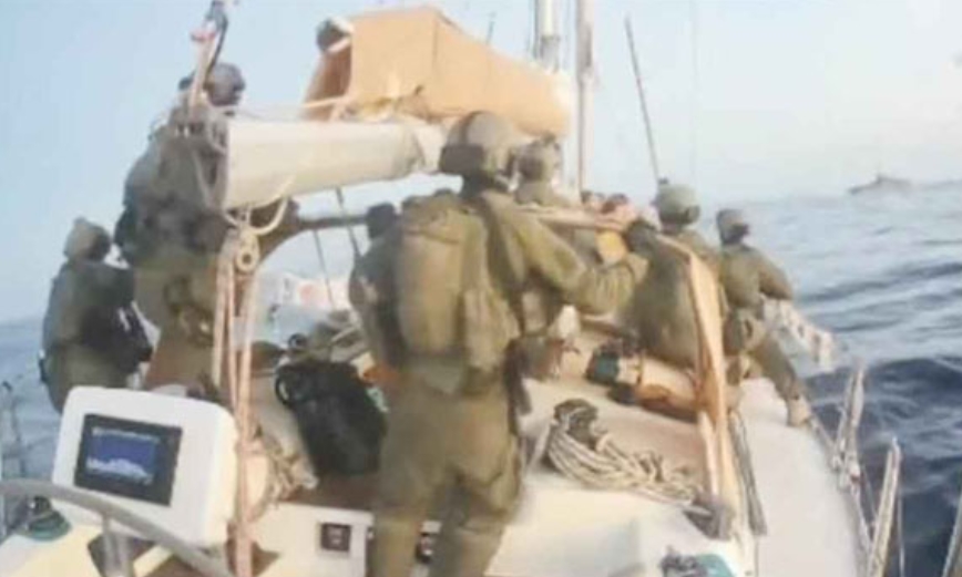 বার্তা সংস্থা রয়টার্সের যাচাই করা সরাসরি সম্প্রচারিত ভিডিওতে দেখা গেছে, ইসরায়েলি সেনারা হেলমেট ও নাইট ভিশন গগলস পরে ফ্লোটিলার নৌযানগুলোতে উঠছে। যাত্রীরা তখন লাইফ জ্যাকেট পরে হাত তুলে গাদাগাদি করে বসেছিলেন। ইসরায়েলের পররাষ্ট্র মন্ত্রণালয়ের প্রকাশিত একটি ভিডিওতে দেখা যায়, সেনাদের মাঝে ডেকে বসে আছেন থুনবার্গ।