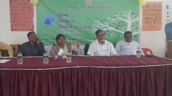 তালা প্রতিনিধি : “শিক্ষকতা পেশা: মিলিত প্রচেষ্টার দীপ্তি”এই প্রতিপাদ্য সামনে রেখে সাতক্ষীরার তালায় বিশ্ব শিক্ষক দিবস পালিত হয়েছে। দিবসটি উপলক্ষ্যে রবিবার (৫ অক্টোবর) সকালে তালা শহীদ আলী আহম্মদ সরকারি বালিকা বিদ্যালয়ে এক আলোচনা সভা অনুষ্ঠিত হয়। সভায় প্রধান অতিথি হিসেবে উপস্থিত ছিলেন তালা উপজেলা নির্বাহী অফিসার দীপা রানী সরকার। আলোচনা সভায় সভাপতিত্ব করেন তালা উপজেলা মাধ্যমিক শিক্ষা অফিসার মোঃ আতিয়ার রহমান। উপজেলা মাধ্যমিক শিক্ষা অফিসের একাডেমিক সুপারভাইজার প্রভাস কুমার দাস ও প্রভাষক গাজী আছাদুজ্জামানের সঞ্চালনায় সভায় বিশেষ অতিথি হিসেবে উপস্থিত ছিলেন তালা মহিলা কলেজের ভারপ্রাপ্ত অধ্যক্ষ সেখ শফিকুল ইসলাম, প্রাক্তন অধ্যক্ষ মোঃ আব্দুর রহমান, পাটকেলঘাটা হারুন অর রশিদ কলেজের ভারপ্রাপ্ত অধ্যক্ষ মোঃ আব্দুল গফুর, পাটকেলঘাটা ফাজিল মাদ্রাসার অধ্যক্ষ মো. আব্দুল কুদ্দুস, তালা উপজেলা মাধ্যমিক শিক্ষক সমিতির আহবায়ক মোঃ মইনুল ইসলাম, শহীদ আলী আহম্মেদ সরকারী বালিকা উচ্চ বিদ্যালয়ের ভারপ্রাপ্ত প্রধান শিক্ষক মোঃ ফজর আলী, উপজেলা মাধ্যমিক শিক্ষক সমিতির সভাপতি জগদীশ হালদার প্রমুখ।