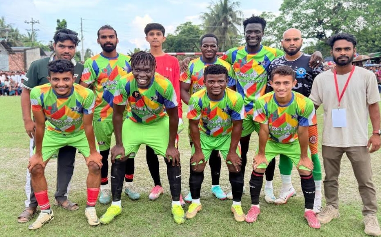তালা প্রতিনিধি : ‘মাদককে না বলুন, খেলার মাঠে ফিরে আসুন’ এই স্লোগান সামনে রেখে তালায় ৩ লক্ষ টাকার ৮দলীয় ফুটবল টুর্নামেন্ট দ্বিতীয় সেমিফাইনাল খেলায় গোপালগঞ্জ ভাজন্দি শিকদার ফুটবল একাডেমি ২-০ গোলের ব্যবধানে সাতক্ষীরা এআর স্পোর্টিং ক্লাবকে পরাজিত করে বিজয়ী হয়েছে। শনিবার (৪ অক্টোবর) বিকালে ছায়াবিথী সংগঠনের আয়োজনে চরগ্রাম কপোতাক্ষ মাধ্যমিক বিদ্যালয়ের মাঠে ফুটবল টুর্নামেন্টের দ্বিতীয় সেমিফাইনাল অনুষ্ঠিত হয়। খেলায় সভাপতিত্ব করেন তালার জালালপুর ইউনিয়ন পরিষদের চেয়ারম্যান ও ছায়াবিথী সংগঠনের প্রধান উপদেষ্টা এম. মফিদুল হক লিটুর অনুষ্ঠিত হয়। টুর্নামেন্টে উদ্বোধন ঘোষণা করেন তালা উপজেলা ঠিকাদার কল্যাণ সমিতির সভাপতি শেখ আনারুল ইসলাম আনু। ছায়াবিথী সংগঠনের সাধারণ সম্পাদক নাসির নাহিদের সঞ্চালনায় অতিথি হিসেবে উপস্থিত ছিলেন তালা বাজার বণিক সমিতির আহবায়ক মো. নুরুল ইসলাম, কলারোয়া উন্নয়ন পরিষদের নির্বাহী পরিচালক শেখ আব্দুস ছালাম, কেন্দ্রীয় ছাত্রদলের সাবেক নেতা মারুফুল ইসলাম মারুফ। সমগ্র টুর্নামেন্টের সার্বিক তত্ত্বাবধানে ছিলেন তালা উপজেলা যুবদলের যুগ্ম আহ্বায়ক ও ছায়াবিথী সামাজিক সংগঠনের সভাপতি মো. সাইদুর রহমান সাইদ। খেলার ধারাভাষ্য দেন সাতক্ষীরা জেলা ক্রীড়া ধারাভাষ্যকার ফোরামের সদস্য মাস্টার ওলিয়ার রহমান ও জাতীয় ক্রীড়া ধারাভাষ্যকার ইসমাইল হোসেন মিলন। মাঠজুড়ে ছিল দূরদূরান্ত থেকে আসা হাজারো ফুটবলপ্রেমীর উপচেপড়া ভিড়। খেলায় নির্বাচিত সেরা প্লেয়ারদের হাতে বিশেষ পুরস্কার তুলে দেওয়া হয়।