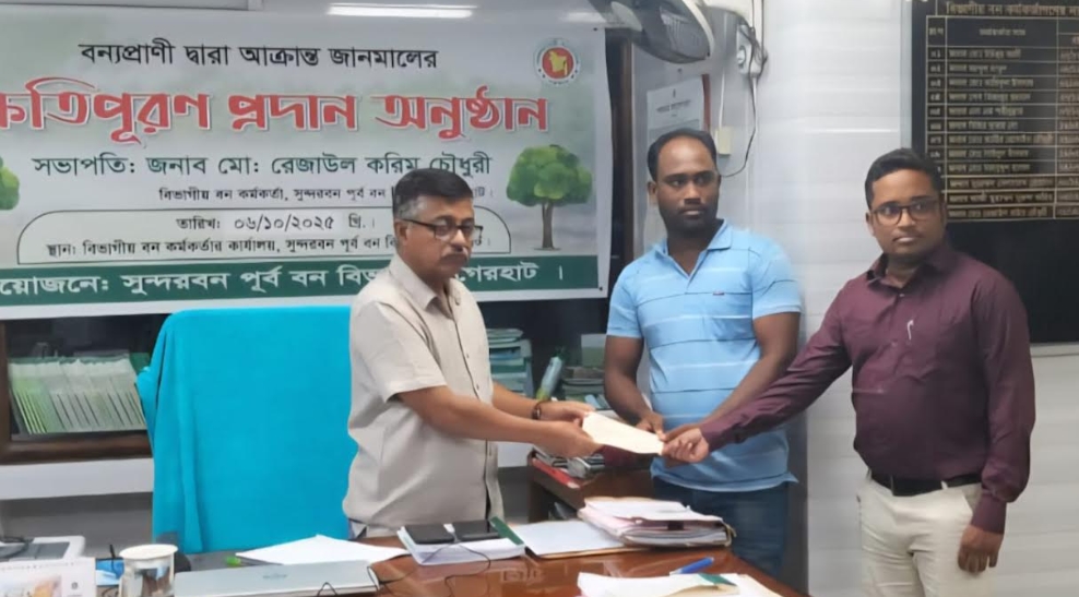 বন বিভাগ সূত্রে জানা যায়, মোংলা উপজেলার জয়মনি গ্রামের গোলাম মোস্তফার পুত্র জেলে সাইফুল জমাদ্দার ২০২৪ সালের ৭ অক্টোবর পশুর নদীতে কাকড়া ধরার সময় কুমিরের আক্রমণে গুরুতর আহত হন। সঙ্গীয় জেলেরা তাকে উদ্ধার করে প্রথমে মোংলা উপজেলা হাসপাতাল এবং পরে খুলনা মেডিকেল কলেজ হাসপাতালে চিকিৎসার জন্য নিয়ে যান। দীর্ঘ চিকিৎসার পরে জেলে সাইফুল সুস্থ হয়ে বাড়ী ফেরেন।