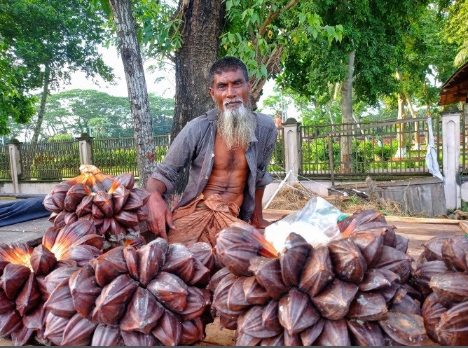ভ্যান চালিয়ে জীবিকা নির্বাহ করতেন বাগেরহাট সদর উপজেলার সুন্দরঘোনা গ্রামের বাসিন্দা আব্দুর রহমান শেখ। প্রায় নয় বছর আগে গ্যাংগ্রিনে আক্রান্ত হয়ে দুই পা হারান তিনি। পঙ্গু অবস্থায় ভ্যান টেনে ছয় ছেলে-মেয়েসহ সংসারের খরচ বহন করতে যখন হিমশিম খাচ্ছিলেন তখনই এই গোলফল বিক্রির চিন্তা মাথায় আসে তার। বছর চারেক আগে ছোট ছেলেকে নিয়ে আশেপাশের এলাকার নদীর পাড়ে জন্মানো গোল গাছ থেকে ফলের কাঁদি কেটে এনে ষাটগম্বুজ মসজিদের সামনে বিক্রি করতে শুরু করেন তিনি।