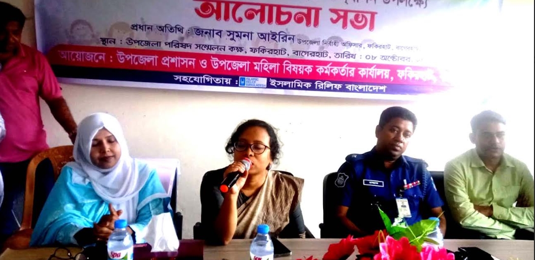 ফকিরহাট প্রতিনিধি :“আমি কন্যা শিশু স্বপ্নগড়ি, সাহসে লড়ি, দেশের কল্যাণে কাজ করি” এই প্রতিপাদ্যকে সামনে রেখে বাগেরহাটের ফকিরহাট জাতীয় কন্যা শিশু দিবস পালিত হয়েছে। এ উপলক্ষ্যে বুধবার (৮ অক্টোবর) বেলা ১১টায় উপজেলা মহিলা বিষয়ক অধিদপ্তরের উদ্যোগে উপজেলা পরিষদ সম্প্রসারিত ভবনের মিলনায়তনে আলোচনা সভা অনুষ্ঠিত হয়। অনুষ্ঠানে প্রধান অতিথি ছিলেন উপজেলা নির্বাহী কর্মকর্তা সুমনা আইরিন। এতে সভাপতিত্ব করেন উপজেলা মহিলা বিষয়ক কর্মকর্তা তাহিরা খাতুন। এসময় ফকিরহাট মডেল থানার ভারপ্রাপ্ত কর্মকর্তা (ওসি) আবদুর রাজ্জাক মীর, উপজেলা প্রকৌশলী মো. আজিজুর রহমান, সমাজসেবা কর্মকর্তা অতিশ কুমার, মাধ্যমিক শিক্ষা কর্মকর্তা মো: গোলাম মোস্তফা প্রমূখ।