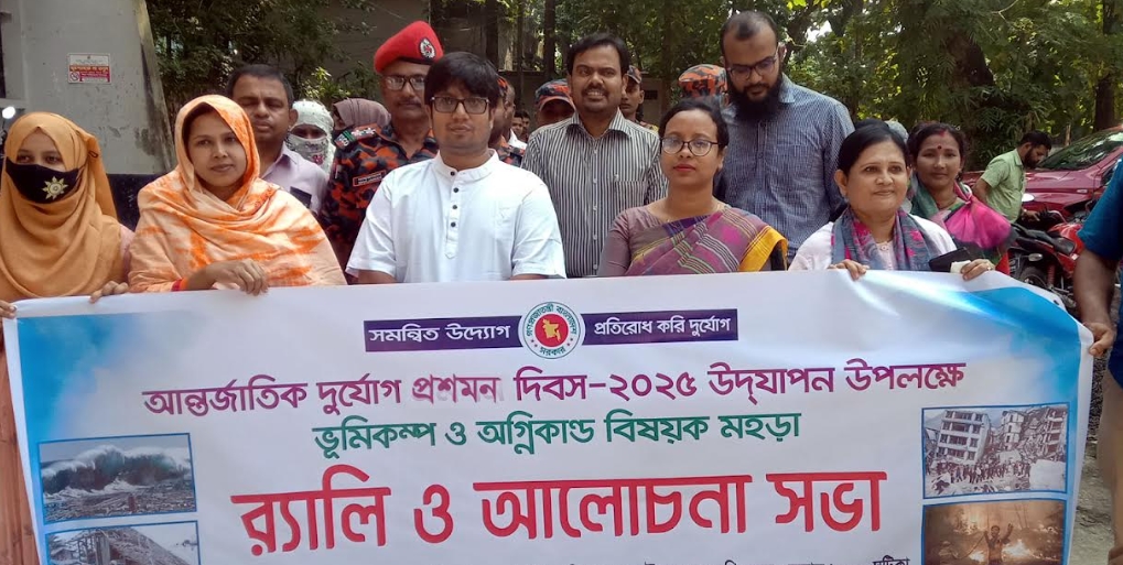 ফকিরহাট প্রতিনিধি : “সমন্বিত উদ্যোগ, প্রতিরোধ করি দুযোর্গ” এই প্রতিপাদ্যকে সামনে নিয়ে বাগেরহাটের ফকিরহাটে আন্তর্জাতিক প্রশমন দিবস পালিত হয়েছে। এ উপলক্ষে র্যালি ও আলোচনা সভা অনুষ্ঠিত হয়। শেষে ভূমিকম্প ও অগ্নিকান্ড বিষয়ক মহড়া প্রদর্শন করে ফায়ার সার্ভিসের সদস্যরা। ফকিরহাট উপজেলা প্রশাসনের আয়োজনে সোমবার (১৩ অক্টোবর) সকাল সাড়ে ১০টায় র্যালি উপজেলা পরিষদ সম্প্রসারতি কমপ্লেক্স ভবন চত্ত্বর থেকে শুরু করে বিভিন্ন সড়ক প্রদক্ষিণ করে। পরে উপজেলা পরিষদ সভাকক্ষে আলোচনা সভা অনুষ্ঠিত হয়। এতে সভাপতিত্ব করেন উপজেলা নির্বাহী কর্মকর্তা সুমনা আইরিন। স্বাগত বক্তব্য রাখেন উপজেলা প্রকল্প বাস্তবায়ন কর্মকর্তা ইমরুল কায়েস। এসময় সহকারী কমিশনার (ভূমি) এএসএম শাহনেওয়াজ মেহেদী, উপজেলা মহিলা বিষয়ক কর্মকর্তা তাহিরা খাতুন, সহকারী প্রোগ্রামার মো: আলমগীর হোসেন, ফকিরহাট ফায়ার সার্ভিস ও ডিফেন্স স্টেশনের ভারপ্রাপ্ত স্টেশন কর্মকর্তা মো: শাহজাহান মিয়াসহ বিভিন্ন কর্মকর্তা ও ফায়ার সার্ভিসের সদস্যগন উপস্থিত ছিলেন। ্এসময় বক্তারা বলেন, দুর্যোগ প্রশমন করতে হলে প্রতিরোধ ও প্রস্তুতি দুটোরই প্রয়োজন রয়েছে। সকলের সহযোগিতা থাকলে যে কোন দুর্যোগ মোকাবেলা করা সম্ভব হবে।