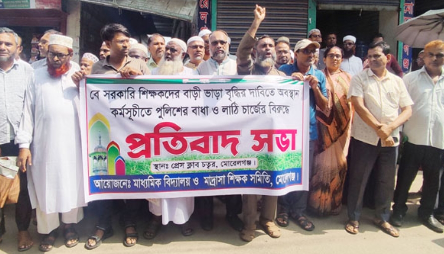 আজ সোমবার (১৩ অক্টোবর) দুপুরে উপজেলা মাধ্যমিক শিক্ষা অফিস চত্বর থেকে বিক্ষোভ মিছিল বের হয়ে বিভিন্ন সড়ক প্রদক্ষিণ করে প্রেসক্লাবের সামনে প্রতিবাদ সভা ও মানবন্ধনের আয়োজন করা হয়। শিক্ষকদের যৌক্তিক আন্দোলনে পুলিশের লাঠি চার্জ করে আহত করায় তীব্র নিন্দা ও হামলাকারীদের দৃষ্টান্তমূলক শাস্তি দিতে হবে। শিক্ষকদের জাতীয়করণসহ সকল দাবি মেনে নিতে হবে। অন্যথায় সকল শিক্ষা প্রতিষ্ঠান লাগাতার বন্ধ থাকবে ।
