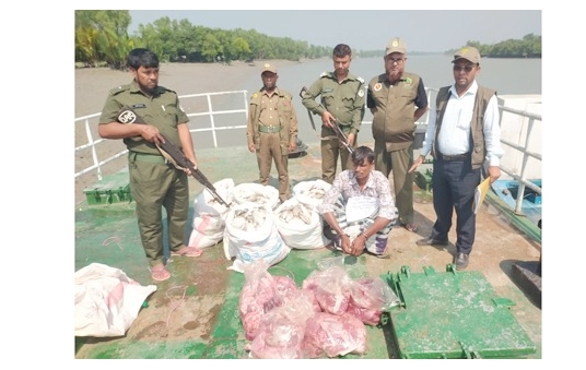 ডেস্ক রিপোর্ট : সুন্দরবন খুলনা রেঞ্জের অধিনস্থ কাশিয়াবাদ স্টেশনের বন রক্ষীরা বিশেষ অভিযান চালিয়ে ৪৮ কেজি হরিণের মাংস সহ ১ শিকারীকে আটক করেছে। আটককৃত হরিণ শিকারী হলেন কয়রা উপজেলার মহারাজপুর গ্রামের হামিদ গাজীর পুত্র দিদারুল ইসলাম (৩৫)। তবে অভিযানের বিষয়টি জানতে পেরে তার সাথে থাকা আরেক শিকারী ১নং কয়রা গ্রামের মনিরুল ইসলাম নৌকা হতে লাফ দিয়ে পালিয়ে যায়। ঘটনাস্থল থেকে ২ টি নৌকা, ১১৫ কেজি মাছ ও হরিণ ধরার সরঞ্জাম জব্দ করা হয়। জানা গেছে সোমবার (১৪ অক্টোবর) রাত ১১ টার দিকে ৪নং কয়রা গ্রামের শাকবাড়িয়া নদী সংলগ্ন এলাকা হতে কাশিয়াবাদ স্টেশন কর্মকর্তা মোঃ নাসির উদ্দীনের নেতৃত্বে অভিযান চালিয়ে এই হরিণের মাংস সহ তাকে আটক করে। খুলনা রেঞ্জের সহকারী বন সংরক্ষক( এসিএফ) মোঃ শামীম রেজা মিঠু বলেন, এ ব্যাপারে ২ জনের নাম উল্লেখ করে বন্যপ্রানী আইনে মামলা দায়ের করা হয়েছে। আটককৃত হরিণের মাংস ও মাছ পচনশীল হওয়ায় আদালতের অনুমতিক্রমে মাটিতে পুতে বিনষ্ট করা হয়েছে। আটক হরিণ শিকারীকে কয়রা উপজেলা সিনিয়র জুডিশিয়াল ম্যাজিস্ট্রেট আদালতে প্রেরন করা হয়েছে।
