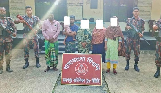বিজিবি জানিয়েছেন,সকাল সাড়ে ৯টার দিকে বাঘাডাঙ্গা বিওপির হাবিলদার সাইফুর রহমানের নেতৃত্বে অভিযান চালায় বিজিবির টহল দল। এসময় সীমান্ত পিলার ৬০/৩৭ সংলগ্ন এলাকা থেকে নারী শিশু সহ ৬ জনকে আটক করা হয়। আটককৃতরা অবৈধ ভাবে সীমান্ত পেরিয়ে ভারতে প্রবেশের চেষ্টা করছিলেন বলে বিজিবির পক্ষ থেকে দাবি করা হয়েছে। আটকদের মহেশপুর থানায় হস্তান্তর করা হবে বলে জানিয়েছে বিজিবি।