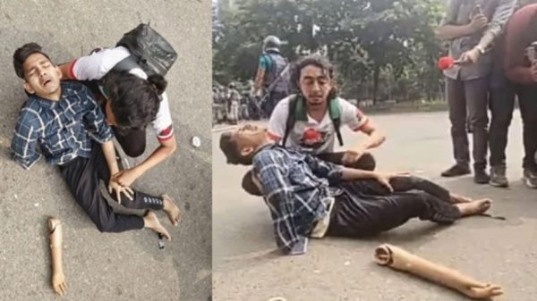 সরেজমিনে দেখা গেছে, আন্দোলনরত জুলাই যোদ্ধাদের ওপর পুলিশের লাঠিচার্জের সময় রাস্তায় দেখা যায় একজন জুলাই যোদ্ধার শরীরে লাগানো একটি কৃত্রিম হাত খুলে পড়ে যায় রাস্তায়। লাঠিচার্জ সহ্য করতে না পারায় হাত রেখেই পালিয়ে যান সেই অবস্থানকারী।