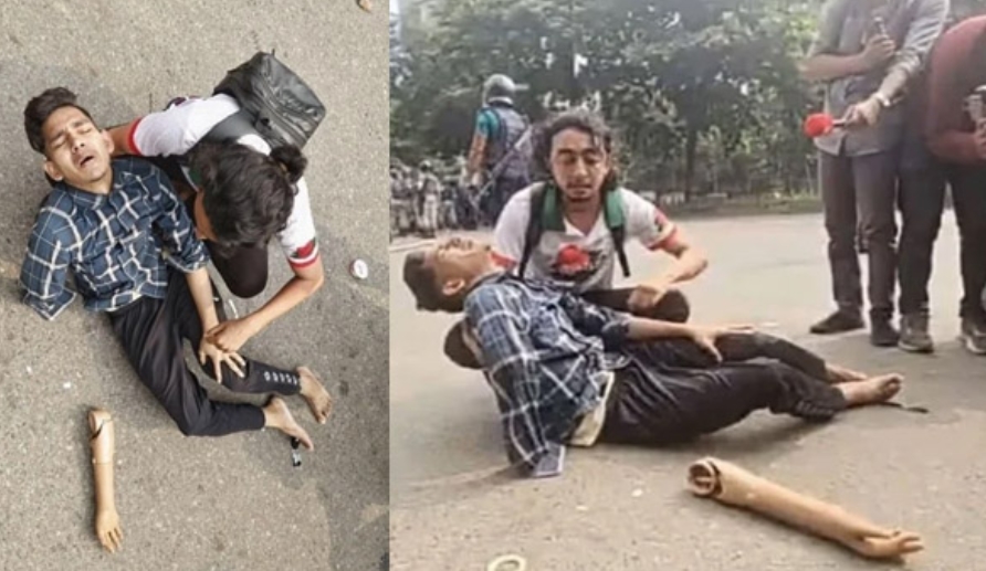 সরেজমিনে দেখা গেছে, আন্দোলনরত জুলাই যোদ্ধাদের ওপর পুলিশের লাঠিচার্জের সময় রাস্তায় দেখা যায় একজন জুলাই যোদ্ধার শরীরে লাগানো একটি কৃত্রিম হাত খুলে পড়ে যায় রাস্তায়। লাঠিচার্জ সহ্য করতে না পারায় হাত রেখেই পালিয়ে যান সেই অবস্থানকারী।