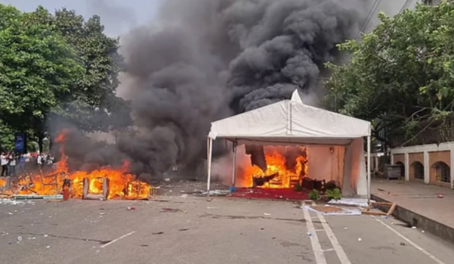 একপর্যায়ে বাইরে থাকা অংশটি সংসদ ভবনের ১২ নম্বর গেট ভেঙে ভেতরে ঢোকে। পরে ভেতরে থাকা অংশটি বাইরে চলে আসে। এসময় আন্দোলনকারীরা পুলিশকে লক্ষ্য করে বোতল ও চেয়ার নিক্ষেপ করে। এরপরই সংঘর্ষের সূত্রপাত ঘটে।