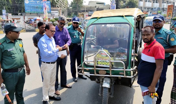 বিজ্ঞপ্তি : খুলনা মহানগরী এলাকায় চলাচলরত বহিরাগত ও অনিবন্ধনকৃত ব্যাটারী চালিত ইজিবাইক আটক অভিযান রবিবার থেকে শুরু হয়েছে। নগরীর যানজট নিরসনের লক্ষ্যে খুলনা সিটি কর্পোরেশন ও খুলনা মেট্রোপলিটন পুলিশের ট্রফিক বিভাগ যৌথভাবে এ অভিযান পরিচালনা করে। অভিযানের ১ম দিনে বহিরাগত ও অনিবন্ধনকৃত ৩২টি ইজিবাইক আটক করে জোড়াগেটস্থ ট্রাফিক অফিসে হস্তান্তর করা হয়। নগরবাসীর স্বাচ্ছন্দে চলাচলের সুবিধার্থে এ অভিযান অব্যাহত থাকবে। কেসিসি’র সিনিয়র লাইসেন্স অফিসার মো: মনিরুজ্জামান রহিম, মেট্রোপলিটন পুলিশের ট্রাফিক ইন্সপেক্টর মো: জহিরুল ইসলাম, টিএসআই মো: রেজাউল করিম, কেসিসি’র লাইসেন্স অফিসার শেখ মো: দেলওয়ার হোসেন ও খান হাবিবুর রহমানসহ লাইসেন্স ইন্সপেক্টর এবং কেএমপি’র পুলিশ সদস্যগণ অভিযানে অংশগ্রহণ করেন।
