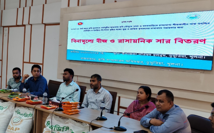 ডুমুরিয়া প্রতিনিধি : ডুমুরিয়া উপজেলা ২০২৫-২৬ অর্থ বছরে কৃষি প্রণোদনা কর্মসূচীর আওতায় সোমবার সকাল ১১টায় রবি মৌসুমে মাঠে ও বসতবাড়িতে চাষযোগ্য শীতকালীন শাক সবজির (হাইব্রিড ও ইনব্রিড) উৎপাদন বৃদ্ধির লক্ষ্যে ক্ষুদ্র ও প্রান্তিক কৃষকদের চাষাবাদে সহায়তার জন্য ডুমুরিয়ায় উপজেলায় কৃষি সম্প্রসারণ অধিদপ্তর, ডুমুরিয়া কৃষি সম্প্রসারণ অধিদপ্তরের বাস্তবায়নে ডুমুরিয়া উপজেলা সহকারী কমিশনার ভূমি অমিত কুমার বিশ্বাস সভাপতিত্বে ডুমুরিয়া ক্ষুদ্র ও প্রান্তিক কৃষকের মাঝে বিনামূল্যে৮৩০জন সবজি ও ৯৭৫ রবিশষ্য বিভিন্ন ফসলের বীজ ও রাসায়নিক সার বিতরণ করা হয়।