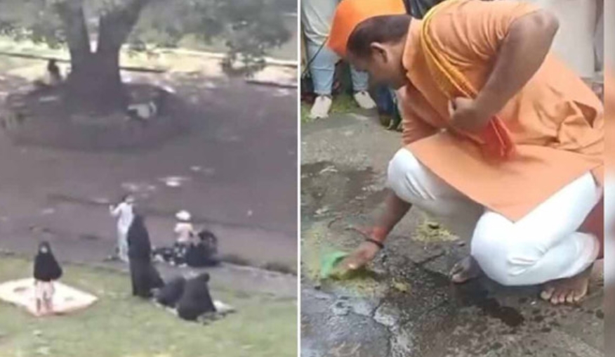 ভিডিওতে দেখা যায়, বিজেপি নেতারা দুর্গের ভেতর সেই স্থানটি গোমূত্র দিয়ে ধুয়ে ‘শুদ্ধি’ অনুষ্ঠান করছেন এবং শিব বন্দনা পাঠ করছেন।