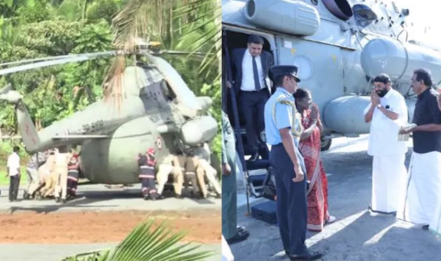 চার দিনের কেরল সফরে যান রাষ্ট্রপতি দ্রৌপদী মুর্মু। বুধবার সকালে শবরীমালা মন্দিরে যাচ্ছিলেন তিনি। ওই সময় এই দুর্ঘটনা ঘটে। ঘটনাস্থলে প্রত্যক্ষদর্শীদের মতে, হেলিকপ্টারটি অবতরণের পর কিছুক্ষণের মধ্যেই হেলিপ্যাডের একাংশ ধসে পড়ে অতিরিক্ত ভারের কারণে কপ্টারের পিছনের অংশ অনেকটা ঢুকে যায়। ভিডিওতে দেখা যায়, উপস্থিত দমকল ও পুলিশ সদস্যরা হাত দিয়ে ঠেলে বিপজ্জনক স্থান থেকে কপ্টারটি সরিয়ে নিয়ে যাচ্ছেন।