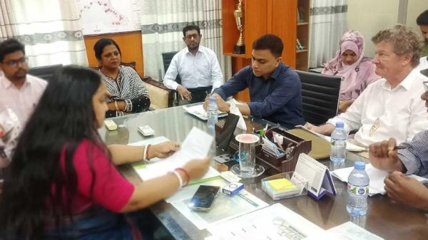 তালা প্রতিনিধি : বেসরকারি সংস্থা-উদ্দীপ্ত মহিলা উন্নয়ন সংস্থা’র উদ্যোগে তালায় আন্তর্জাতিক গ্রামীণ নারী দিবস পালিত হয়েছে। দিবসটি উপলক্ষে গ্রামীণ নারীদের ভূমি অধিকার, কৃষিতে অংশগ্রহণ ও জলবায়ু সহনশীলতা নিশ্চিতকরণের দাবিতে মানববন্ধন, আলোচনা সভা এবং স্মারকলিপি প্রদান করা হয়। বৃহস্পতিবার (২৩ অক্টোবর) সকালে তালা শহীদ মুক্তিযোদ্ধা মহাবিদ্যালয়ের সামনের সড়কে অনুষ্ঠিত মানববন্ধন শেষে উদ্দীপ্ত মহিলা উন্নয়ন সংস্থা কার্যালয়ে আলোচনা সভা অনুষ্ঠিত হয়। দলিত নেত্রী ঊষা রানী দাসের সভাপতিত্বে সভায় প্রধান অতিথি হিসেবে উপস্থিত ছিলেন বিডিইআরএম’র তালা উপজেলা সভাপতি স্বরস্বতী রানী দাস। বিশেষ অতিথি হিসেবে উপস্থিত ছিলেন সমাজকর্মী দিলীপ কুমার দাস, সাংবাদিক জুলফিকার রায়হান এবং শিক্ষক শুভ সরকার। সভায় দিবসটির গুরুত্ব তুলে ধরেন উদ্দিপ্ত মহিলা উন্নয়ন সংস্থা’র প্রজেক্ট ম্যানেজার মনি শংকার হালদার। এসময় দলিত নারী, ভূমিহীন নারী ও কৃষাণীসহ কমিউনিটি নেতৃবৃন্দ উপস্থিত ছিলেন। সভা শেষে উপজেলা নির্বাহী অফিসারের নিকট স্মারকলিপি প্রদান করা হয়।