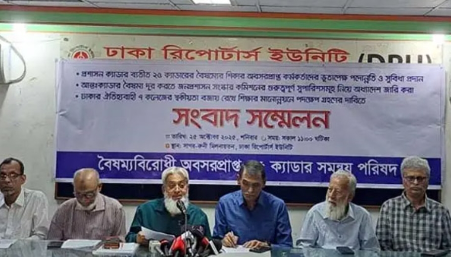 ভূতাপেক্ষ পদোন্নতিতেও প্রশাসন ক্যাডার ছাড়া অন্যদের বঞ্চিত করা হয়েছে অভিযোগ করে তিনি বলেন, বিগত ফ্যাসিবাদী শাসনামলে বৈষম্যের শিকার কর্মকর্তাদের বঞ্চনা লাঘবের জন্য অন্তর্বর্তী সরকার উদ্যোগ গ্রহণ করেন। এ প্রক্রিয়ায় প্রশাসন ক্যাডারের অবসরপ্রাপ্ত ও প্রয়াত মিলে প্রায় ৭৭৮ জন কর্মকর্তাকে ভূতাপেক্ষ পদোন্নতি দেওয়া হয়েছে। তাদের পদোন্নতির আদেশে ভূতাপেক্ষ পদোন্নতির ক্রম উল্লেখ এবং বেতন ভাতাসহ সব অর্থিক সুবিধা দেওয়া হয়েছে। পরবর্তীতে অন্যান্য ক্যাডারের পক্ষ থেকে দাবি উত্থাপন করা হলে কর্মকর্তাদের কাছ থেকে আবেদন আহ্বান করা হয়। প্রাপ্ত আবেদনপত্র যাচাই-বাছাই করে ২৫টি ক্যাডারের বঞ্চিত অবসরপ্রাপ্ত মাত্র ৭২ জন কর্মকর্তাকে ভূতাপেক্ষ পদোন্নতি দেওয়া হয়।