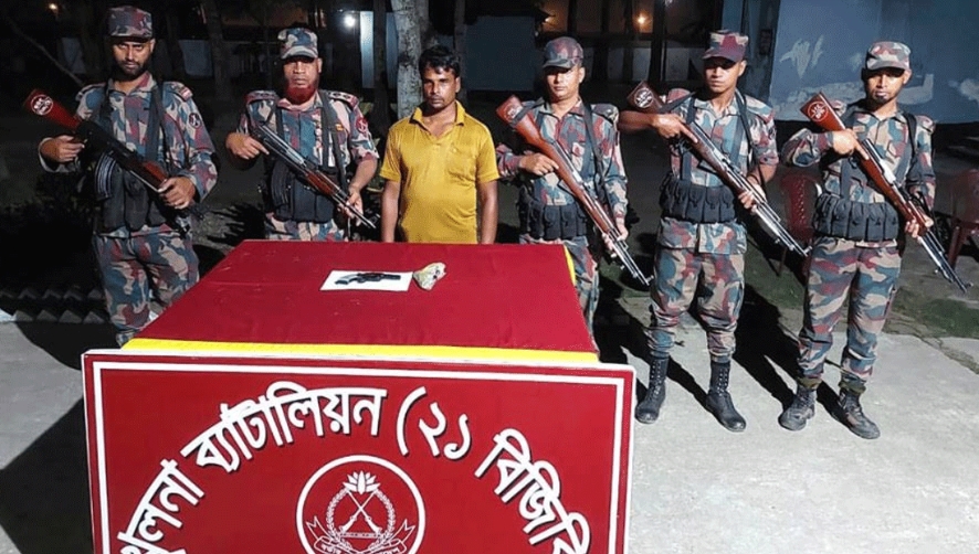 যশোর প্রতিনিধি : যশোরের বেনাপোল সীমান্তে অভিযান চালিয়ে অস্ত্রসহ আতাউর রহমান (৪০) নামে এক ব্যক্তিকে আটক করেছে বর্ডার গার্ড বাংলাদেশ (বিজিবি)। মঙ্গলবার ভোররাতে ২১ বিজিবির দৌলতপুর বিওপির একটি বিশেষ টহলদল এ অভিযান পরিচালনা করে। আটককৃত আতাউর রহমান দৌলতপুর উত্তরপাড়া গ্রামের সোলায়মান হোসেনের ছেলে। বিজিবি সূত্রে জানা যায়, সুবেদার মো. ফখরুল ইসলামের নেতৃত্বে একটি বিশেষ টহলদল দৌলতপুর উত্তরপাড়া এলাকায় অভিযান চালায়। এ সময় ধান রাখার একটি গোলাঘর তল্লাশি করে একটি দেশি পিস্তল উদ্ধার করা হয়। পরবর্তীতে অস্ত্রসহ তাকে বেনাপোল পোর্ট থানায় সোপর্দ করা হয়েছে বলে বিজিবি সূত্রে নিশ্চিত করা হয়েছে।