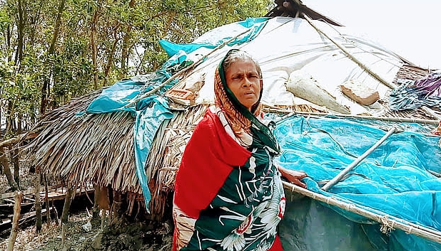 কাটকাটা এলাকায় বেড়িবাঁধের ওপর ঝুপড়িঘরে বসবাস মজিদা খাতুনের