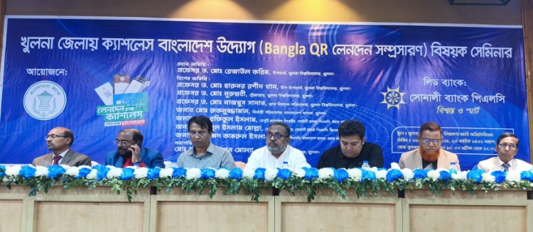 ডেস্ক রিপোর্ট : "লেনদেন হচ্ছে ক্যাশলেস, এগিয়ে যাচ্ছে বাংলাদেশ" এই প্রতিপাদ্যকে সামনে রেখে খুলনা জেলায় ক্যাশলেস বাংলাদেশ উদ্যোগে গতকাল সকাল ১০টায় খুলনা বিশ্ববিদ্যালয়ের (খুবি) লিয়াকত আলী মিলনায়তনে সেমিনার অনুষ্ঠিত হয়। বাংলাদেশ ব্যাংকের আয়োজনে ও লিড ব্যাংক সোনালী ব্যাংক পিএলসি-এর উদ্যোগে এই সেমিনারটি আয়োজিত হয়। এই সেমিনারের মূল লক্ষ্য ছিল খুলনা জেলায় ডিজিটাল আর্থিক লেনদেন ও ইধহমষধ ছজ এর ব্যবহার বৃদ্ধি করা। অনুষ্ঠানে প্রধান অতিথি ছিলেন খুলনা বিশ্ববিদ্যালয়ের উপাচার্য প্রফেসর ড. মোঃ রেজাউল করিম। বিশেষ অতিথি ছিলেন খুবির উপ-উপাচার্য প্রফেসর ড. মোঃ হারুনর রশীদ খান, খুবির ট্রেজারার প্রফেসর ড. মোঃ নূরুন্নবী, খুবির ছাত্র বিষয়ক পরিচালক প্রফেসর ড. মোঃ নাজমুস সাদাত, বাংলাদেশ ব্যাংক খুলনার নির্বাহী পরিচালক মো: রুকনুজ্জামান, সোনালী ব্যাংকের প্রধান কার্যালয়ের ডেপুটি ম্যানেজিং ডিরেক্টর মোঃ রফিকুল ইসলাম, সোনালী ব্যাংক খুলনার জেনারেল ম্যানেজার জাহিদুল ইসলাম মোল্লা এবং বাংলাদেশ ব্যাংকের প্রধান কার্যালয় পিএসডি পরিচালক মোহাম্মদ কামরুল ইসলাম। উক্ত সেমিনারে সভাপতিত্ব করেন বাংলাদেশ ব্যাংক খুলনার পরিচালক মোঃ মতিয়ার রহমান মোল্যা। সেমিনারে খুলনা বিশ্ববিদ্যালয়ের শিক্ষক-শিক্ষার্থী, ব্যাংকের কর্মকর্তা, ব্যবসায়ী এবং সংশ্লিষ্ট বিভিন্ন প্রতিষ্ঠানের প্রতিনিধিরা উপস্থিত থেকে ক্যাশলেস লেনদেনের সুবিধা এবং এর সম্প্রসারণ বিষয়ে আলোচনায় অংশ নেন।