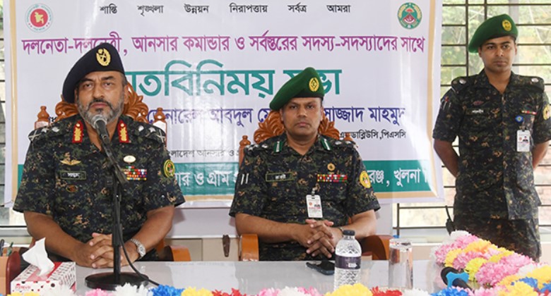বিজ্ঞপ্তি : বাংলাদেশ আনসার ও গ্রাম প্রতিরক্ষা বাহিনীর মহাপরিচালক মেজর জেনারেল আবদুল মোতালেব সাজ্জাদ মাহমুদ, (এসজিপি, বিএএম, এনডিইউ, এএফডব্লিউসি, পিএসসি) গতকাল খুলনার আনসার ও ভিডিপি আঞ্চলিক প্রশিক্ষণ কেন্দ্র পরিদর্শন করেন। এসময় তিনি ইলাইপুর, রুপসা, খুলনায় ১৪ দিন ব্যাপী উপজেলা/থানা আনসার মৌলিক প্রশিক্ষণ (৪র্থ) ধাপ প্রশিক্ষণ ক্যাম্প পরিদর্শন ও মতবিনিময় করেন। মতবিনিময় সভায় সভাপতিত্ব করেন খুলনা রেঞ্জের উপমহাপরিচালক মোঃ নূরুল হাসান ফরিদী, বিএএম। এ সময় উপস্থিত ছিলেন পরিচালক খুলনা আনসার ব্যাটালিয়ন (৩ বিএন) মোল্যা আবু সাইদ, পরিচালক ওয়েলফেয়ার আনসার ও ভিডিপি সদর দপ্তর, এনামুল খাঁন, বিভিএমএস, উপপরিচালক (সমন্বয়) নাজমুস সালেহীন নূর। মহাপরিচালক প্রশিক্ষণার্থীদের উদ্দেশ্যে দিকনির্দেশনা মূলক বক্তব্য প্রদান করেন। পরে আনসার ও ভিডিপি রেঞ্জ কার্যালয়ের সভাকক্ষে খুলনা রেঞ্জের সকল ইউনিট প্রধানসহ বিভিন্ন পদবির কর্মকর্তাদের সাথে মতবিনিময় করেন এবং আনসার ফ্লাওয়ারমিল পরিদর্শন করেন।