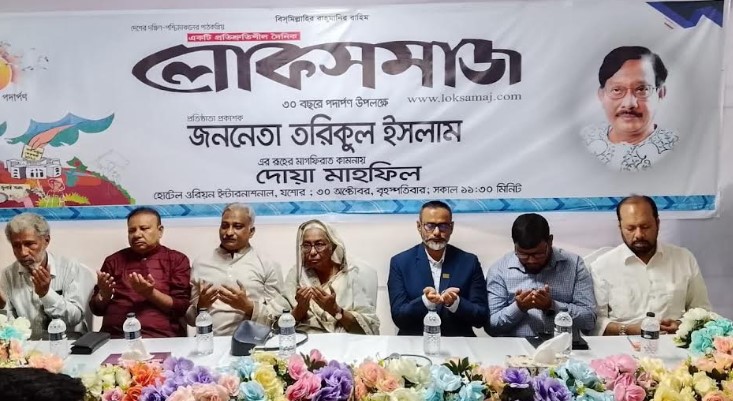 যশোর অফিস : দেশের দক্ষিণ-পশ্চিমাঞ্চলের পাঠকনন্দিত দৈনিক লোকসমাজ গৌরবময় তিন দশক অতিক্রম করে বৃহস্পতিবার পদার্পণ করেছে ৩০তম বর্ষে। দিনভর নানা আয়োজনের মধ্য দিয়ে উদযাপিত হয় পত্রিকার প্রতিষ্ঠাবার্ষিকী। সকালে কারবালা কবরস্থানে প্রতিষ্ঠাতা প্রকাশক, সাবেক মন্ত্রী ও বিএনপির স্থায়ী কমিটির প্রয়াত সদস্য তরিকুল ইসলামের কবর জিয়ারতের মাধ্যমে অনুষ্ঠানের সূচনা হয়। পরে হোটেল ওরিয়ন ইন্টারন্যাশনালে দোয়া মাহফিল ও আলোচনা সভা অনুষ্ঠিত হয়। সভায় লোকসমাজ-এর সম্পাদক অধ্যাপক নার্গিস বেগম বলেন,“তরিকুল ইসলাম ছিলেন নিঃসঙ্গ এক শেরপা, যিনি মানুষের কথা বলার প্রয়োজনে প্রতিকূল সময়েও পত্রিকাটি চালিয়ে গেছেন।” তিনি আরও বলেন, পত্রিকাটি দীর্ঘ ২৯ বছর বৈরী পরিস্থিতি মোকাবিলা করেও সত্য প্রকাশের ধারা অটুট রেখেছে। জেলা প্রশাসক মো. আজহারুল ইসলাম বলেন, “প্রতিষ্ঠাতা তরিকুল ইসলামের মনন ও জনকল্যাণে তাঁর নিবেদনই লোকসমাজ-এর সাফল্যের ভিত্তি।” প্রকাশক শান্তনু ইসলাম সুমিত পাঠক, লেখক ও শুভানুধ্যায়ীদের প্রতি কৃতজ্ঞতা প্রকাশ করেন। অনুষ্ঠানে জেলা প্রশাসন, প্রেসক্লাব যশোর, বিএনপি, যশোর চেম্বার অব কমার্সসহ বিভিন্ন সংগঠনের প্রতিনিধি, সাংবাদিক, রাজনীতিক, শিক্ষাবিদ ও সাংস্কৃতিক ব্যক্তিত্বরা উপস্থিত ছিলেন। দিনব্যাপী আয়োজনের মধ্যে ছিল দোয়া মাহফিল, স্মরণসভা, ফুলেল শুভেচ্ছা ও কেক কাটা। সন্ধ্যায় পত্রিকার কার্যালয়ে লোকসমাজ পরিবারের সদস্যরা প্রতিষ্ঠাবার্ষিকী উদযাপন করেন।