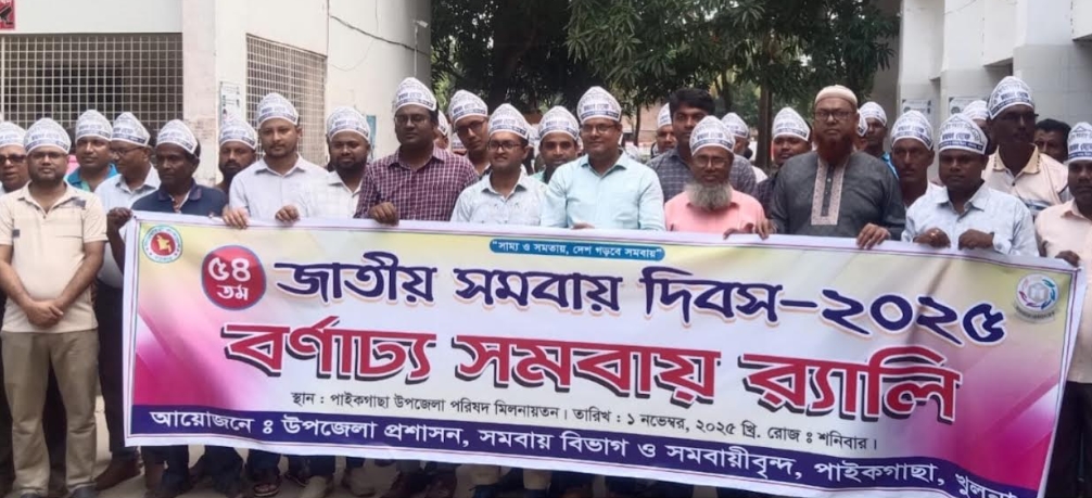 পাইকগাছা প্রতিনিধি : পাইকগাছায় নানা আয়োজনের মধ্য দিয়ে ৫৪ তম জাতীয় সমবায় দিবস পালিত হয়েছে। এ উপলক্ষে উপজেলা প্রশাসন, সমবায় বিভাগ ও সমবায়ীরা সমবায় ও জাতীয় পতাকা উত্তোলন, সমবায় র্যালি ও আলোচনা সভার আয়োজন করে। ১ নভেম্বর শনিবার সকালে র্যালি শেষে উপজেলা পরিষদ মিলনায়তনে " সাম্য ও সমতায়, দেশ গড়বে সমবায় " প্রতিপাদ্য বিষয়ের উপর আলোচনা সভা অনুষ্ঠিত হয়। উপজেলা সমবায় কর্মকর্তা হুমায়ূন কবির এর সভাপতিত্বে অনুষ্ঠানে প্রধান অতিথি ছিলেন সহকারী কমিশনার ভূমি মোঃ ফজলে রাব্বি। বিশেষ অতিথি ছিলেন উপজেলা কৃষি অফিসার কৃষিবিদ একরামুল হোসেন, সিনিয়র উপজেলা মৎস্য কর্মকর্তা সৈকত মল্লিক, সমাজসেবা কর্মকর্তা অনাথ কুমার বিশ্বাস, প্রাইমারি এডুকেশন প্রশিক্ষণ কর্মকর্তা ইমান উদ্দিন, উপজেলা খাদ্য নিয়ন্ত্রক হাসিবুর রহমান, পল্লী সঞ্চয় ব্যাংকের সিনিয়র কর্মকর্তা জয়ন্ত ঘোষ। এসএফডিএফ কর্মকর্তা জিএম জাকারিয়ার সঞ্চালনায় অনুষ্ঠানে বক্তব্য রাখেন সহকারী সমবায় পরিদর্শক আমির হোসেন, দীপন জোয়ার্দার, প্রেসক্লাবের সহ সভাপতি আব্দুল আজিজ, সাধারণ সম্পাদক এম মোসলেম উদ্দিন আহমেদ, সাংবাদিক আসাদুল ইসলাম, সমবায়ী দিলীপ কুমার বিশ্বাস, চিত্তরঞ্জন রায়, বিদ্যুৎ কুমার বিশ্বাস ও আসাদুজ্জামান।