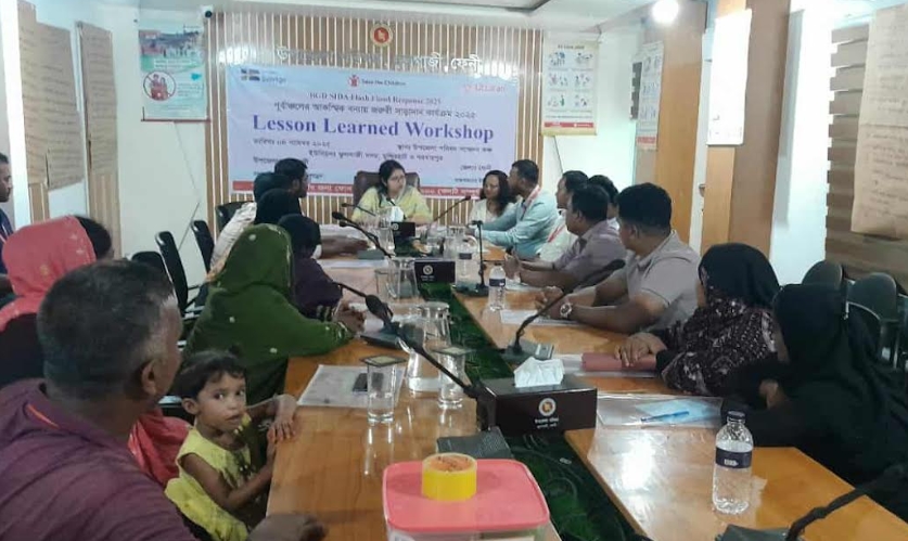 তালা প্রতিনিধি : মঙ্গলবার (৪ নভেম্বর) সকালে দাতা সংস্থা সিডা’র অর্থায়নে সেভ দ্য চিলড্রেন ইন্টারন্যাশন্যালের সহযোগিতায় উত্তরণ কর্তৃক বাস্তবায়িত ইএউ ঝওউঅ ঋষধংয ঋষড়ড়ফ জবংঢ়ড়হংব ২০২৫ প্রকল্পের লেসন লার্ণ কর্মশালা ফেনীর ফুলগাজী উপজেলা পরিষদের সম্মেলন কক্ষে অনুষ্ঠিত হয়। ফুলগাজী উপজেলার ফুলগাজী সদর, মুন্সিরহাট ও দরবারপুর ইউনিয়নে ২০২৫ সালের বন্যায় ক্ষতিগ্রস্থ ৯০০ জন উপকারভোগীর মাঝে শর্তহীন নগদ টাকা ও হাইজিন কিটস বিতরণ কার্যক্রম পরিচালনা শেষে প্রকল্পের উক্ত লেসন লার্ণ কর্মশালায় সভাপতিত্ব করেন উত্তরণের প্রকল্পের সমন্বয়কারী হাসিনা পারভীন। কর্মশালায় প্রধান অতিথি হিসাবে উপস্থিত ছিলেন ফুলগাজী উপজেলা নির্বাহী অফিসার ফাহরিয়া ইসলাম। বিশেষ অতিথি হিসাবে উপস্থিত ছিলেন দায়িত্বপ্রাপ্ত কর্মকর্তা ফুলগাজী সদর ইউনিয়ন এবং উপজেলা কৃষি কর্মকর্তা মোঃ খোরশেদ আলম, মুন্সিরহাট ইউনিয়ন এবং উপজেলা একাডেমিক সুপারভাইজার মোঃ মোয়াজ্জেম হোসাইন, দরবারপুর ইউনিয়ন ও উপজেলা যুব উন্নয়ন কর্মকর্তা মোঃ মাসুদুল হক। এ সময় সেভ দ্য চিলড্রেন এর প্রজেক্ট অফিসার মোঃ মোস্তাফিজুর রহমানসহ স্ব স্ব ইউনিয়নের প্রশাসনিক কর্মকর্তাগণ, সহযোগি সংস্থা ও ফুলগাজী সদর,মুন্সিরহাট ও দরবারপুর ইউনিয়নের প্রশাসনিক কর্মকর্তাগণ, উপকারভোগী, সাংবাদিক এবং উত্তরণের প্রকল্প স্টাফবৃন্দ উপস্থিত ছিলেন। লেসন লার্ণ কর্মশালায় প্রকল্পের সবলদিক, চ্যালেঞ্জ, লার্ণিং এবং মতামত নিয়ে দলীয় আলোচনা হয় এবং দলীয় আলোচনার মাধ্যমে যা উঠে আসে তাহলো: এই প্রকল্পের মাধ্যমে জেলা, উপজেলা এবং ইউনিয়ন পর্যায়ে সমন্বয়ের মাধ্যমে ক্রাইটেরিয়া অনুসরণ করে বন্যায় ক্ষতিগ্রস্থ প্রকৃত উপকারভোগী নির্বাচন করা হয়েছে এবং তাদের মাঝে শর্তহীন নগদ ৬ হাজার টাকা এবং হাইজিন কিটস বিতরণ করা হয়েছে। যা খুবই স্বচ্ছতার সাথে বাস্তবায়িত হয়েছে এবং প্রশংসার দাবী রাখে। এছাড়াও উপস্থিত উপকারভোগীরা জানান, এই টাকা দিয়ে তারা অনেকে ছাগল ও হাঁস-মুরগী কিনেছেন, বাঁশ কিনে বাঁশের ঝুড়ি তৈরী করে তা বিক্রি করে সংসার চালাচ্ছেন, ছেলে মেয়েদের লেখা-পড়ার খরচ দিয়েছেন, খাবার কিনেছেন, ঔষধ কিনেছেন ইত্যাদি। তারা টাকা এবং হাইজিন কিটস পেয়ে খুবই খুশি। এছাড়াও উপস্থিত সকলেই উল্লেখিত কার্যক্রম হাতে নেয়ার জন্য দাতা সংস্থা সিডা, সহযোগি সংস্থা সেভ দ্য চিলড্রেন ও বাস্তবায়নকারী সংস্থা উত্তরণকে আন্তরিক ধন্যবাদ জানান।