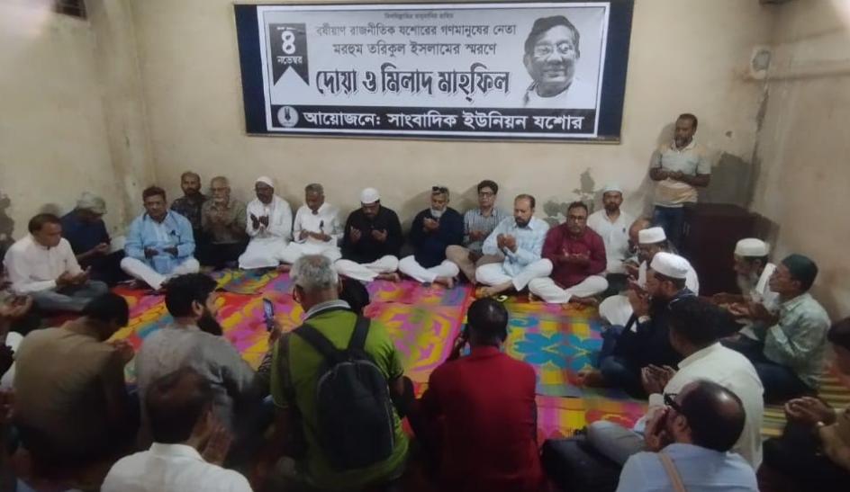 যশোর প্রতিনিধি : বর্ষীয়ান রাজনীতিক, সাবেক মন্ত্রী ও বিএনপির জাতীয় স্থায়ী কমিটির সদস্য মরহুম তরিকুল ইসলামের মৃত্যুবার্ষিকী উপলক্ষে দোয়া ও মিলাদ মাহফিলের আয়োজন করেছে সাংবাদিক ইউনিয়ন যশোর। মঙ্গলবার দুপুরে প্রেসক্লাব যশোরের শহীদ সাংবাদিক সাইফুল আলম মুকুল মিলনায়তনে এই দোয়া মাহফিল অনুষ্ঠিত হয়।