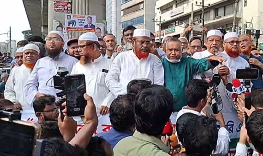 সংক্ষিপ্ত সমাবেশ শেষে প্রধান উপদেষ্টার কার্যালয় যমুনার অভিমুখে যাত্রা শুরু করে জামায়াতে ইসলামীসহ অন্যান্য আটটি রাজনৈতিক দলের নেতৃবৃন্দ।