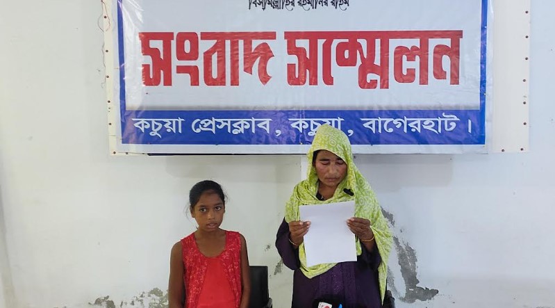কচুয়া প্রতিনিধি : কচুয়া উপজেলার ছিটবাড়ি গ্রামের গৃহবধূ পারভিন বেগম(৪৫) ও তার ৯ বছরের শিশু কন্যাকে নিজ বসতবাড়ি থেকে জোরপূর্বক বিতাড়িত করার প্রতিবাদে ও বিচার চেয়ে সংবাদ সম্মেলন করেছেন ভুক্তভোগী নারী। গতকাল শনিবার সকাল ১১ টায় কচুয়া উপজেলা প্রেসক্লাব হল রুমে সংবাদ সম্মেলনে ভুক্তভোগী নারী জানান তার স্বামী হাফিজুর রহমান এর প্রথম স্ত্রী দীর্ঘকাল ধরে অসুস্থ থাকায় ১৫ বছর পূর্বে হাফিজুর রহমান ভুক্তভোগী নারীকে বিবাহ করে। এবং ভুক্তভোগী নারীকে স্বামী হাফিজুর রহমান বসতবাড়ির বিশ শতক জমি রেজিস্ট্রি করে দেন। ভুক্তভোগী নারী বাপের বাড়ি থেকে টাকা সংগ্রহ করে সেই জমিতে একটি ঘর তৈরি করে। কয়েক বছর পরে প্রথম স্ত্রী ও তাদের সন্তানদের ষড়যন্ত্রে ভুক্তভোগী নারীকে স্বামী, দেবর, ও প্রথম স্ত্রীর সন্তানরা ব্যাপক নির্যাতন করতে থাকে। রক্তাক্ত ওইসব নির্যাতনের হাত থেকে রক্ষা পেতে অভিযুক্তদের বিরুদ্ধে ভুক্তভোগী নারী মামলা করে। মামলায় স্বামী জেল হাজতে আছে। অন্যান্য আসামীরা জামিনে বেরিয়ে ভুক্তভোগীর বসতবাড়ি জোরপূর্বক ঘরের তালা ভেঙে দখলে নেয় এবং ঘরে রক্ষিত স্বর্ণালংকার সহ মূল্যবান জিনিসপত্র আত্মসাৎ করে। ভুক্তভোগী পারভীন ঘরে বসবাস করতে চাইলে তাকে হত্যার হুমকি দিয়ে ভুক্তভোগী ও তার কন্যা সন্তানকে বাড়ি থেকে জোরপূর্বক তাড়িয়ে দেয় অভিযুক্তরা। ভুক্তভোগী পারভিন জানান, এ বিষয়ে বাগেরহাট পুলিশ সুপার মহোদয়ের কাছে জানানো হলে পুলিশ সুপার মহোদয় কচুয়া থানা পুলিশকে ব্যবস্থা নেওয়ার জন্য মৌখিক নির্দেশ দেন। কিন্তু অদৃশ্য কারণে কচুয়া থানা পুলিশ অভিযুক্তদের পক্ষ নিয়ে ভুক্তভোগীকে বারবার অসহযোগিতা করে আসছে। ভুক্তভোগী নারী পারভীন ও তার কন্যা সন্তান এ ঘটনার সঠিক বিচার চেয়ে সবার কাছে আকুতি জানিয়েছেন।