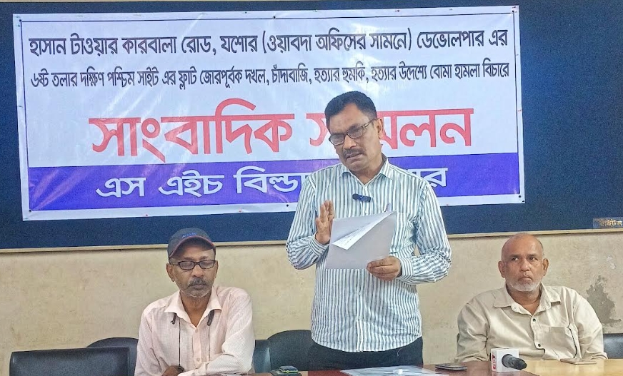যশোর প্রতিনিধি : যশোরে ফ্ল্যাট দখল,চাঁদাবাজি, বোমা হামলা ও হত্যার হুমকির অভিযোগ তুলে জীবনের নিরাপত্তা দাবিতে সংবাদ সম্মেলন করেছেন স্থানীয় ডেভোলপার প্রতিষ্ঠান এস. এইচ. বিল্ডার্সের পরিচালক এস. এম. রফিকুল ইসলাম হীরক।