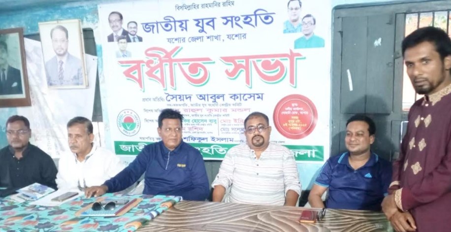 যশোর অফিস : যশোর জেলা জাতীয় পার্টির কার্যালয়ে শনিবার বিকেলে মোঃ শফিকুল ইসলামের সভাপতিত্বে অনুষ্ঠিত হয়েছে যশোর জেলা জাতীয় যুব সংহতির বর্ধিত সভা। সভায় প্রধান অতিথি ছিলেন জাতীয় যুব সংহতির কেন্দ্রীয় কমিটির সহ-সভাপতি সৈয়দ আবুল কাশেম। বিশেষ অতিথি হিসেবে উপস্থিত ছিলেন কেন্দ্রীয় সাংগঠনিক সম্পাদক রাহুল দেব মণ্ডল, জাতীয় তরুণ পার্টির খুলনা বিভাগীয় সাংগঠনিক সম্পাদক জাকির হোসেন বাবু, জেলা যুব সংহতি যশোরের কেন্দ্রীয় নেতা ও সহ-সভাপতি বিএম রশিদ, সাধারণ সম্পাদক মো. ইদ্রিস আলম, এবং সাংগঠনিক সম্পাদক মো. সোলেমান শিকদার। এছাড়া সভায় জাতীয় যুব সংহতির বিভাগীয়, জেলা ও ইউনিয়ন পর্যায়ের নেতৃবৃন্দ উপস্থিত ছিলেন। বর্ধিত সভায় যশোর জেলা জাতীয় যুব সংহতির ৩১ সদস্য বিশিষ্ট নতুন কমিটি ঘোষণা করা হয়। এতে তরিকুল ইসলামকে আহ্বায়ক ও আব্দুল জলিলকে সদস্য সচিব করা হয়েছে।