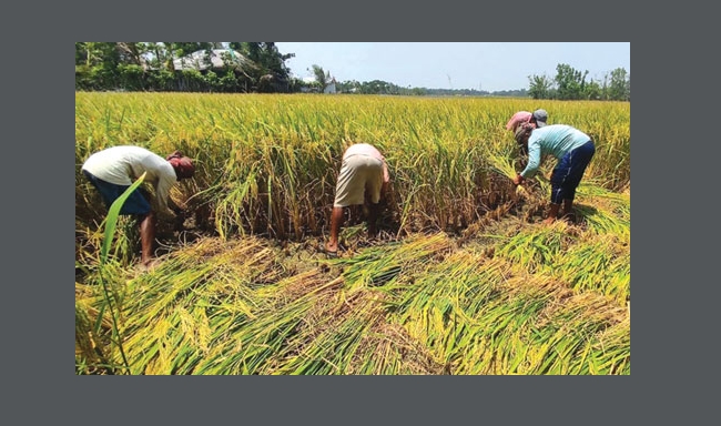কয়েকদিন পূর্বে ও সাতক্ষীরার মাঠ ছিল সবুজের সমারোহের বেড়াজালে। তারপর হলুদাভাব, স্নিগ্ধ হওয়ায় মন মাতানো উদাসী দোলায় মাঠময় ঝিকিরমিকির এক অন্য প্রকৃতি দেখতে দেখতে সবুজ, আর হলুদাভাবের সেই গোছায় গোছা ধান গাছ পাকা ধানে পরিপূর্ণতা পেয়ে বর্তমানে তা কৃষকের ঘরে যেতে চলেছে। পাকা ধান কাটার শুরু হয়েছে মহাউৎসব, এ দৃশ্য সাতক্ষীরার দিগন্ত বিস্তৃ মাঠে। শস্য ভান্ডার সাতক্ষীরার কৃষকরা তাদের স্বপ্ন সাধ পুরনে ব্যস্ত, অবিরাম, ক্লান্তহীন ভাবে কেটে চলেছে আমন ধান। সকাল হতে সন্ধ্যা পর্যন্ত পুরোদমে চলছে ধানকাটা, গোছানো। মহা ব্যস্ততায় কৃষকরা। কাকডাকা ভোরে আবার কেউ কেউ সকালে গাতার খেয়ে সন্ধ্যা পর্যন্ত ধান কেটেই চলেছে দৃশ্যতঃ সাতক্ষীরার গ্রামীন অর্থনীতিতে আমন ধান নির্ভর অর্থনীতির সুবাতাস বইছে। কৃষক এবং কৃষি কাজের সাথে সংশ্লিষ্টদের পাশাপাশি বিপুল সংখ্যক শ্রমিক ধান কাটা, বাছা, গোছানো এবং মাড়াই করার কাজে নিয়োজিত। উৎপাদনের ঘাটতি নেই, বলা চলে এবার সাতক্ষীরায় আমনের বাম্পার ফলন হয়েছে, কিন্তু ধানের দাম কিছুটা কম এমন হতাশা ময় কথা বললেন কৃষক মমতাজুর রহমান। তিনি জানান বীজ সার কিছুটা কৃষি দপ্তর হতে বিনামূল্যে পাওয়া গেলেও শ্রমিক মজুরী সহ অপরাপর খরচ পরবর্তি খুববেশী লাভবান হওয়ার সুযোগ নেই। বর্তমান সময়ে আমন ধান ওঠা শুরু হওয়ায় ধানের বাজার কিছুটা নিন্মমুখি, কোন কোন এলাকায় বস্তা প্রতি পনেরশত। কৃষকরা ধানের পাশাপাশি বিচুলী বিক্রয়ে অর্থ পাচ্ছে। সাতক্ষীরার বিভিন্ন ধানকাটা মাঠ পরিদর্শনে দেখা গেছে ক্ষেতে মধ্যেই কৃষক আধুনিক পদ্ধতিতে মেশিনের সাহায্যে ধান মাড়াই করে সেখান থেকেই চিক্রি করছে। তবে এমন দৃশ্য খুব কম, অধিকাংশ কৃষক ধান কেটে বাগের সাহায্যে ছাড়াও ভ্যান, ঠেলাগাড়ী সহ বিভিন্ন যানবাহনে বাড়ীতে নিচ্ছে। আমন ধানের সোদা গন্ধে গ্রামের মেঠো পথ হতে শুরু করে কৃষকের বাড়ী পর্যন্ত মৌ মৌ সুসভিত গন্ধে ভরপুর। কৃষকের পাশাপাশি কৃষাণীরাও মহাব্যস্ত সময় অতিক্রম করছে। ধান সিদ্ধ, শুকানো এবং মাড়াই করার জন্য প্রস্তুত করতে কৃষাণীরা গভীর রাতে উঠছে সূর্য উঠতে না উঠতে ধান সিদ্ধ শেষ করে দৌড়ে শুকাচ্ছে। ধান, সিদ্ধ, রৌদ্রে শুকানো, মাড়াই করা সব মিলে গ্রামীন জনপদ এক ধরনের কমংযজ্ঞে চিত্র চিত্রায়িত হচ্ছে। কৃষকদের সাথে কথা বলে জানাগেছে তাদের অনেকে মহাজন সহ বিভিন্ন এনজিও হতে ঋন গ্রহন করে ধান চাষে নেমেছে। আমন ধান ঘরে তুলেছে কিন্তু ঘরে থাকার সুযোগ কই? ধান বিক্রি করে ঋন পরিশোধ করছে এবং বাদ বাকি ধান সারা বছরের খোরাকির জন্য রাখতে হচ্ছে। আমন ধানের চালের আটার মেহমানদারী এবং আথিথেয়তা হবে। শীত পড়তে শুরু করেছে। গ্রামীন জনপদে শীতের সময় গুলোতে পিঠা পায়েস তৈরীর ধুম পড়ে এই ধানের উপস্