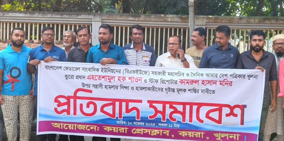 খুলনায় দুই সাংবাদিকের উপর হামলায় কয়রা প্রেসক্লাবের প্রতিবাদ সমাবেশ