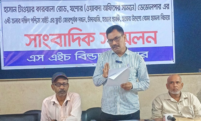 যশোর অফিস : যশোরে ফ্ল্যাট দখল,চাঁদাবাজি, বোমা হামলা ও হত্যার হুমকির অভিযোগ তুলে জীবনের নিরাপত্তা দাবিতে সংবাদ সম্মেলন করেছেন স্থানীয় ডেভোলপার প্রতিষ্ঠান এস. এইচ. বিল্ডার্সের পরিচালক এস. এম. রফিকুল ইসলাম হীরক। গতকাল রবিবার দুপুরে প্রেসক্লাব যশোরে অনুষ্ঠিত এ সংবাদ সম্মেলনে লিখিত বক্তব্য পাঠ করেন তিনি। এ সময় জমির মালিক রশিদুল হাসান মনা, শুভাকাঙ্ক্ষী টিপু সুলতানসহ অন্যান্যরা উপস্থিত ছিলেন। লিখিত বক্তব্যে হীরক অভিযোগ করেন, যশোর শহরের ওয়াপদা অফিসের সামনে ৭৬, কারবালা রোডে “হাসান টাওয়ার” নামে একটি বহুতল ভবন নির্মাণের কাজ তিনি ডেভোলপার হিসেবে করে আসছিলেন। কিন্তু ভবনটির ষষ্ঠ তলার দক্ষিণ-পশ্চিম পাশের একটি ফ্ল্যাটের তালা ভেঙে জমির মালিক তাসলিমা হাসান,ফেনসি হাসান,তার ছেলে মেহেরাফ, আত্মীয় আনোয়ার গাজী, তুষার গাজী ও জিসানসহ কয়েকজন জোরপূর্বক দখল করে নেন। তিনি বলেন,“দখলকারীরা ফ্ল্যাটের নির্মাণসামগ্রী লুট করে প্রায় সাত লাখ টাকার ক্ষতি করেছে এবং ফ্ল্যাটে থাকা সামগ্রী ভাঙচুর করে আরও দেড় লাখ টাকার ক্ষতি সাধন করেছে।” তিনি আরও জানান, এসব বিষয়ে একাধিকবার কোতোয়ালী মডেল থানায় জিডি করা হলেও এখনো কোনো আইনি প্রতিকার পাননি। তিনি ও তার পরিবারের জীবনের নিরাপত্তা দাবি করেছেন। এসব কারণে এস এম রফিকুল ইসলাম হীরকের মা প্রায় অসুস্থ হয়ে পড়েন। তিনি বলেন একজন বড় মাপের পুলিশ কর্মকর্তার ভয় দেখান তাসলিমা হাসান ও তার পরিবারের সদস্যরা। তিনি বলেন পুলিশ কর্মকর্তার নাম ব্যবহার করে আমার পরিবারকে গুম খুন রকমের ভয় দেখান সবাইকে। সংবাদ সম্মেলনের এস এম রফিকুল ইসলাম হিরক প্রশাসনের হস্তক্ষেপ ও সুষ্ঠু তদন্তের মাধ্যমে ঘটনার বিচার দাবি করেন।